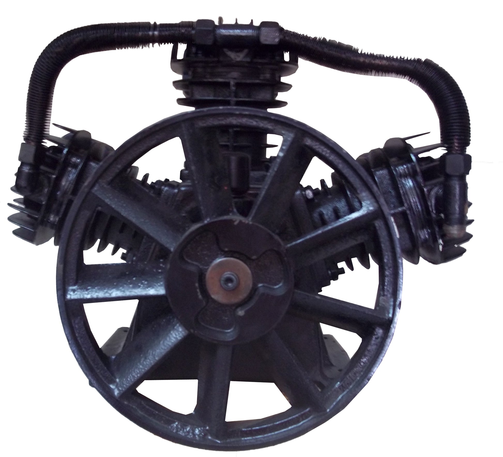 CC3065 - 3 CYLINDER V-STYLE CAST IRON COMPRESSOR PUMP COMPATIBLE WITH MOST (TRUE) 5 HP MOTORS FOR 60 OR 80 GALLON COMPRESSOR ( 8 OR 9 HP GAS ENGINE ) SINGLE STAGE 150 PSI MAX PRESSURE, APPROXIMATELY 15 to 18 CFM