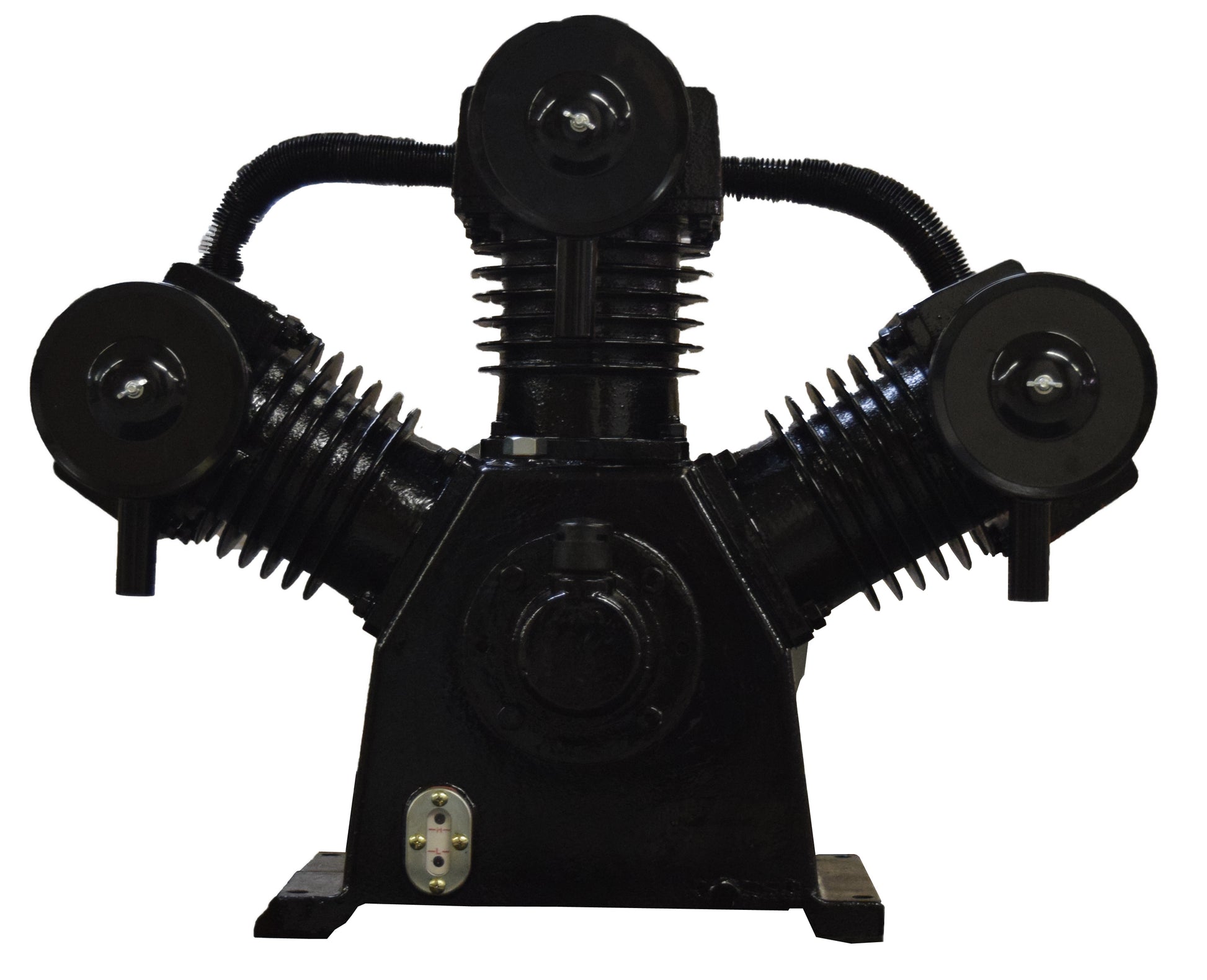 PT15 - 3 CYLINDER V-STYLE CAST IRON COMPRESSOR PUMP COMPATIBLE WITH MOST 15 HP & 20 HP MOTORS FOR 120 GALLON COMPRESSORS, SINGLE STAGE 150 PSI MAX PRESSURE, APPROXIMATELY 60 to 70 CFM